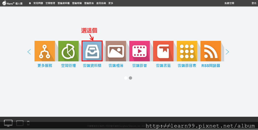 中華電信 Hami+個人雲服務首頁:https://hamicloud.net/