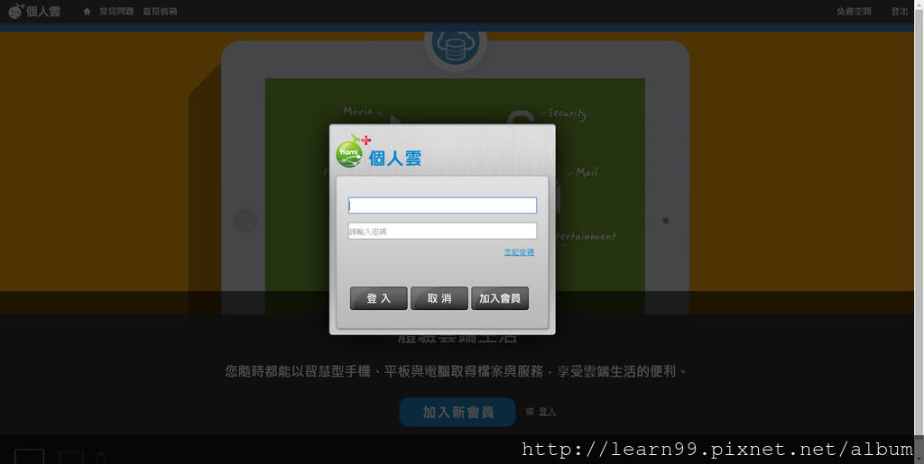 首先,要擁有中華電信的Hami+個人雲的帳號,若你有emome或是hinet的會員就可以不用再註冊,直接輸入帳號密碼進行登入。